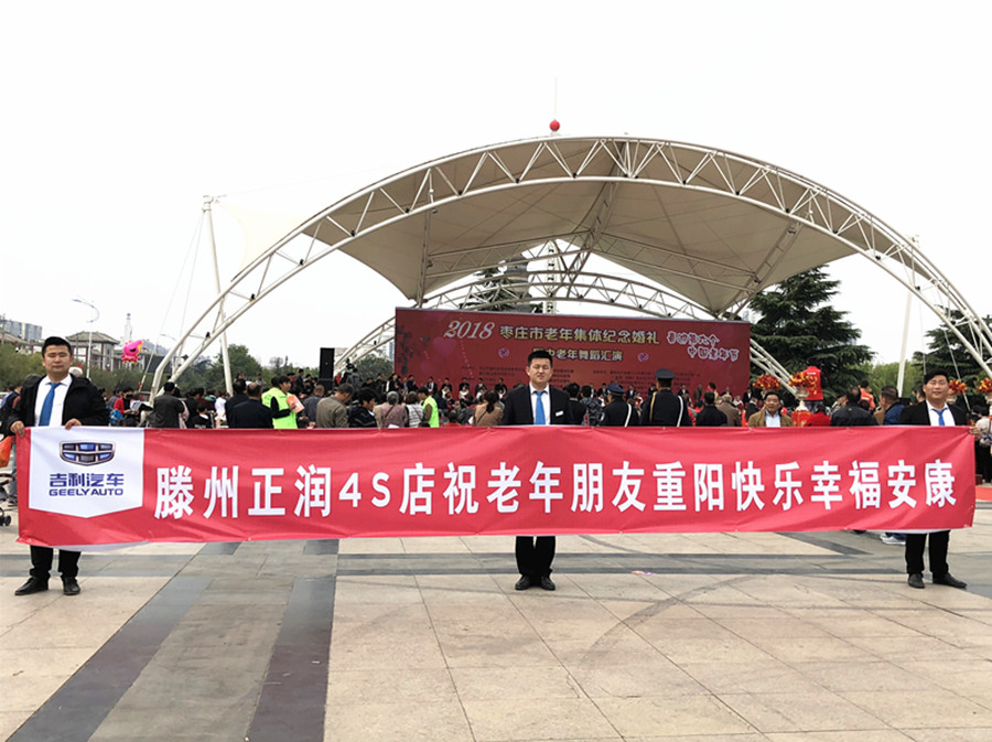 滕州正潤(rùn)吉利4S店提供了6輛試乘、試駕車作為婚車參加了此次活動(dòng),負(fù)責(zé)接送婚禮老人、體驗(yàn)試乘以及老年車模紀(jì)念留影等。