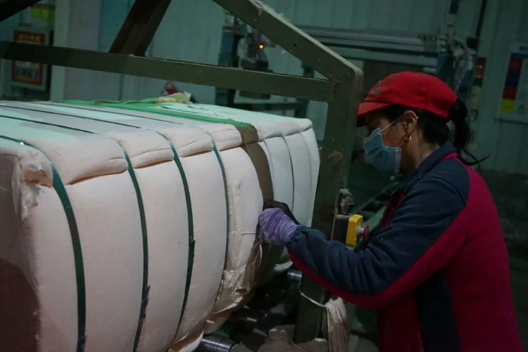 ▲新疆阿克蘇·工作人員正在查看棉朵
