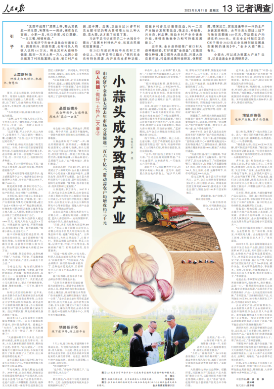 8月11日,《人民日?qǐng)?bào)》整版刊發(fā)題為《小蒜頭成為致富大產(chǎn)業(yè)》的報(bào)道。文章指出,水發(fā)農(nóng)業(yè)集團(tuán)權(quán)屬公司金鄉(xiāng)縣和福隆水發(fā)農(nóng)業(yè)發(fā)展有限公司研發(fā)黑蒜、蒜汁等產(chǎn)品,延伸產(chǎn)業(yè)鏈,提升價(jià)值鏈,打造增值新路徑。