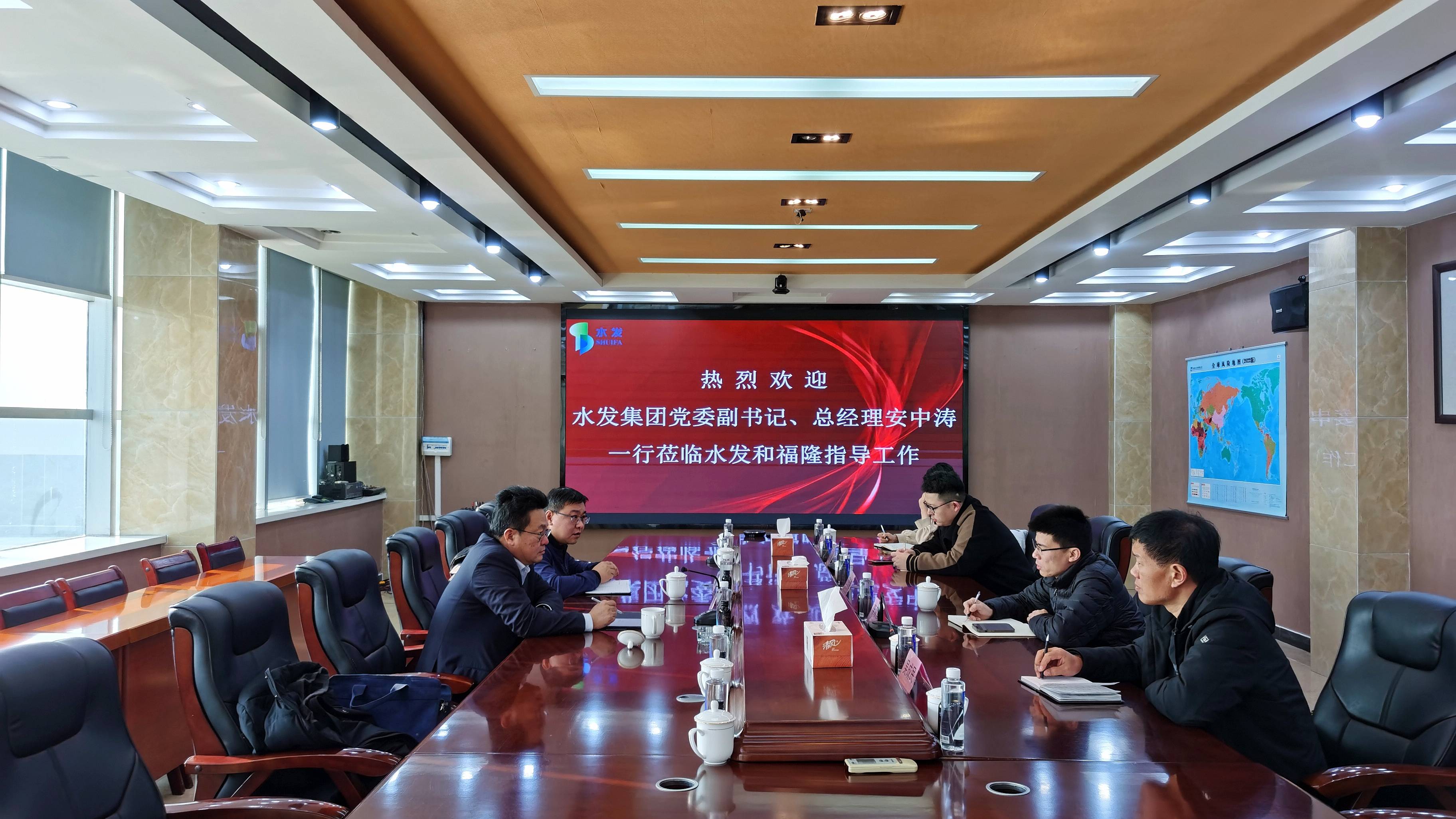 1月10日下午,水發(fā)集團黨委副書記、總經(jīng)理安中濤一行蒞臨水發(fā)和福隆調(diào)研指導工作,深入了解公司經(jīng)營工作情況,并在會議室開展交流座談會。