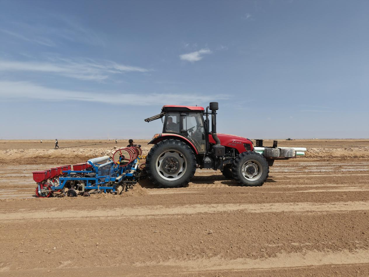 在庫車水控農業發展有限公司萬畝棉田里,采用北斗導航無人駕駛技術的智能播種機正以厘米級精度勻速行進。