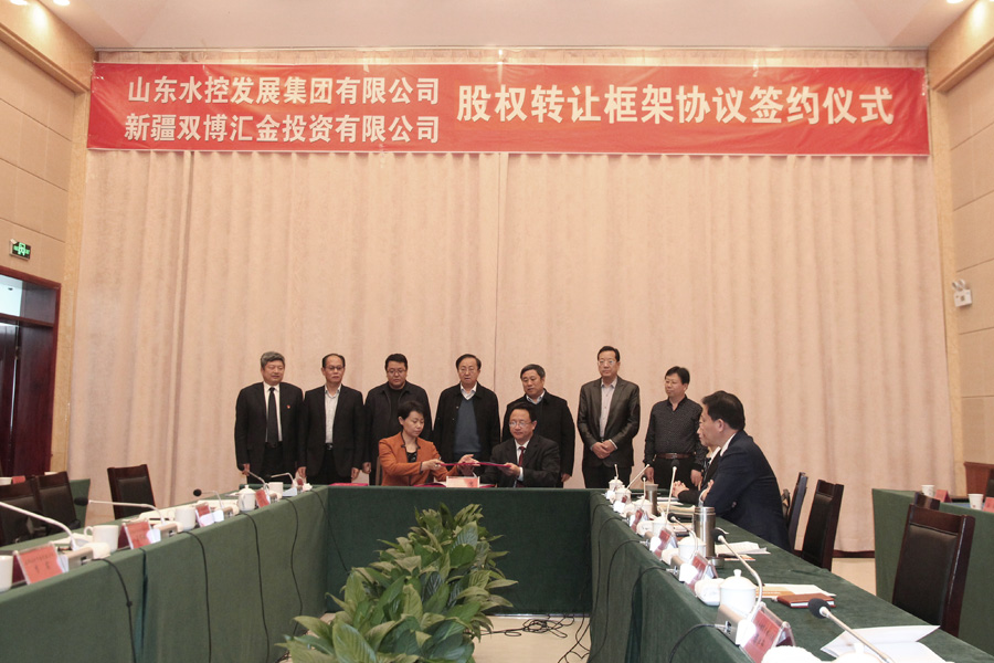 2月28日,山東水控發(fā)展集團(tuán)有限公司(以下簡稱:水控集團(tuán))與新疆雙博匯金投資有限公司(以下簡稱:雙博匯金公司)在雙河市舉行股權(quán)轉(zhuǎn)讓框架協(xié)議簽約儀式。新疆生產(chǎn)建設(shè)兵團(tuán)第五師、雙河市黨委常委、副師長王作敏,副市長葉松出席簽約儀式,新疆生產(chǎn)建設(shè)兵團(tuán)第五師、雙河市國資委主任李實主持簽約儀式。