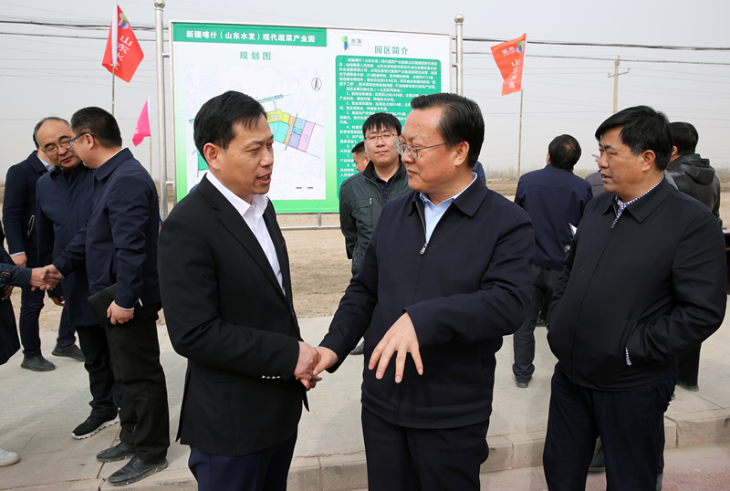 3月14日,新疆維吾爾自治區(qū)黨委副書(shū)記李鵬新一行到新疆喀什(山東水發(fā))現(xiàn)代蔬菜產(chǎn)業(yè)園項(xiàng)目現(xiàn)場(chǎng)進(jìn)行調(diào)研。喀什地委書(shū)記李寧平、疏勒縣委書(shū)記董建,疏勒縣委副書(shū)記、援疆指揮部指揮曹永湖,山東水控發(fā)展集團(tuán)有限公司總經(jīng)理助理、新疆農(nóng)業(yè)板塊負(fù)責(zé)人劉道營(yíng),新疆東魯水控農(nóng)業(yè)發(fā)展有限公司相關(guān)負(fù)責(zé)同志陪同。