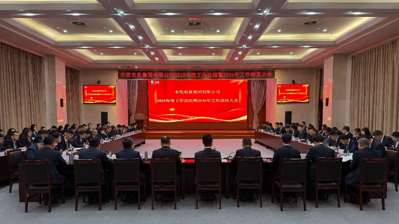 2月28日,水發農業集團召開2025年度工作總結暨2026年工作動員大會,深入學習貫徹上級系列會議精神,全面總結2025年工作成效,安排部署2026年工作任務,動員全體干部職工團結奮進、乘勢而上、開創新局,努力為水發集團打造具有全國重要影響力的新型水生態企業集團貢獻新的更大力量。水發集團黨委委員、副總經理、水發農業集團黨委書記、董事長王曉川出席會議并講話,水發農業集團黨委副書記、董事、總經理隋沂作2025年度工作報告,水發農業集團黨委副書記朱昌舉主持會議。